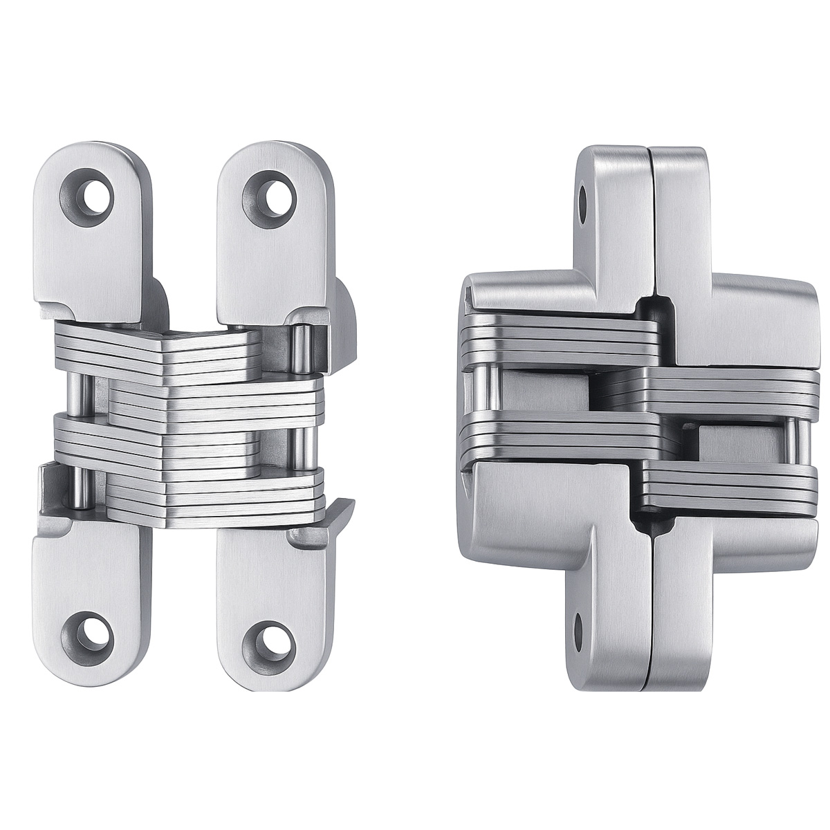 Bisagra oculta CM 60×13 mm diseño compacto, ideal para puertas ligeras.